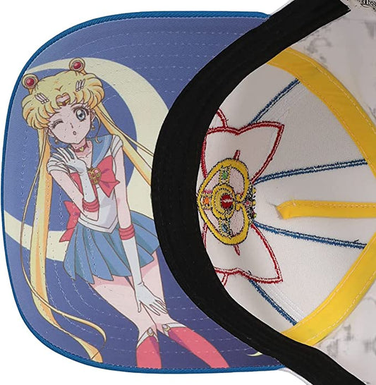 Casquette - Sailor Moon Crystal - Uniforme de Sailor Moon avec Le Cosmic Heart Compact Brodée Blanche Rouge et Bleue Snapback Ajustable