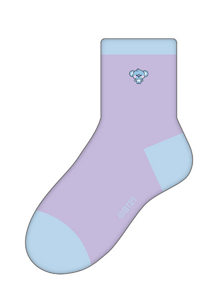 Chaussettes - BT21 Line Friends - Bébé Koya Brodées Mauves et Bleues 1 Paire Crew
