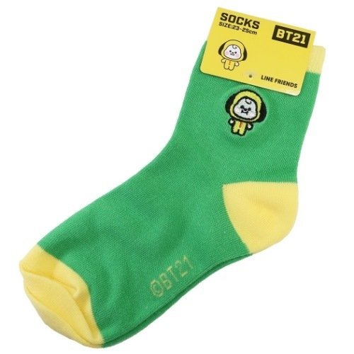 Chaussettes - BT21 Line Friends - Bébé Chimmy Brodées Vertes et Jaunes 1 Paire Crew