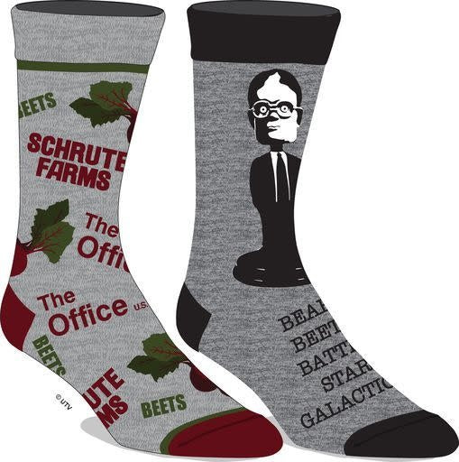 Chaussettes - The Office - Schrute Farms et Dwight Grises Paquet de 2 Paires Crew Tube