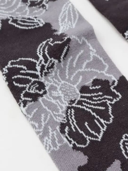 Chaussettes - Tabi - Fleurs Avec Accent Doré Noires 1 Paire 22-25cm