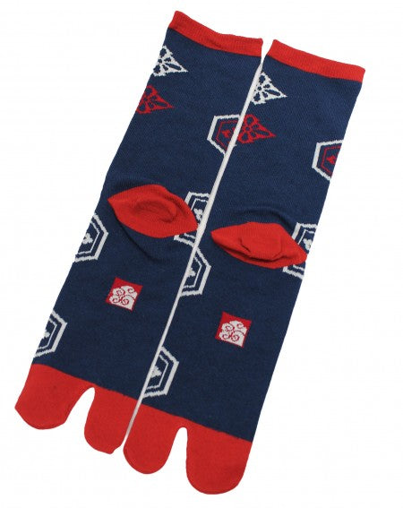 Chaussettes - Tabi - Bunmei Kaika Bleues et Rouges 1 Paire 25-28cm