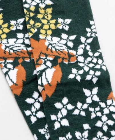 Chaussettes - Tabi - Fleurs et Feuilles Vertes et Beiges 1 Paire 23-25cm
