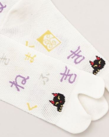 Chaussettes - Tabi - Kuro Neko Chats Noirs et Hiragana Blancs 1 Paire 23-25cm