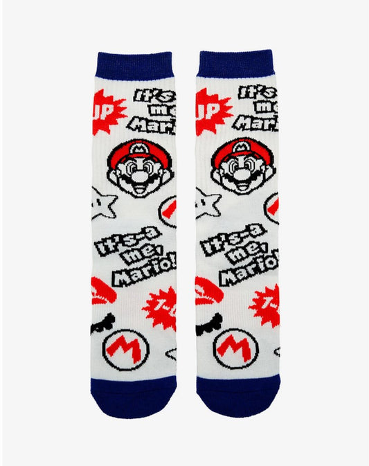 Chaussettes - Nintendo Super Mario - Mario "It's-a me Mario!" Blanches et Bleues 1 Paire Crew