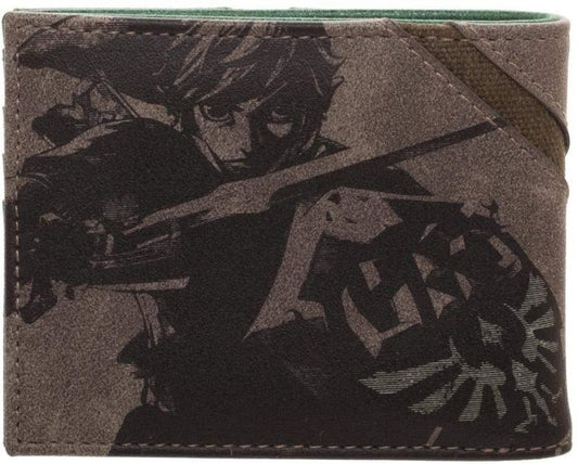 Portefeuille - The Legend of Zelda - Link avec Bouclier d'Hyrule en Métal en Faux Cuir Vert et Taupe Bifold