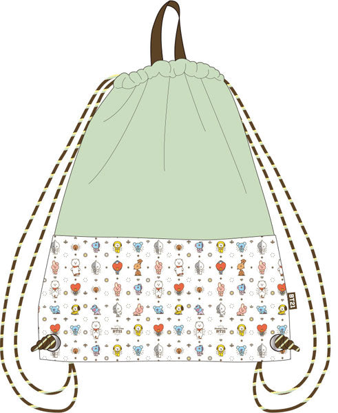 Sac à Dos - BT21 Line Friends - Personnages Blanc et Vert à Cordon *LIQUIDATION*