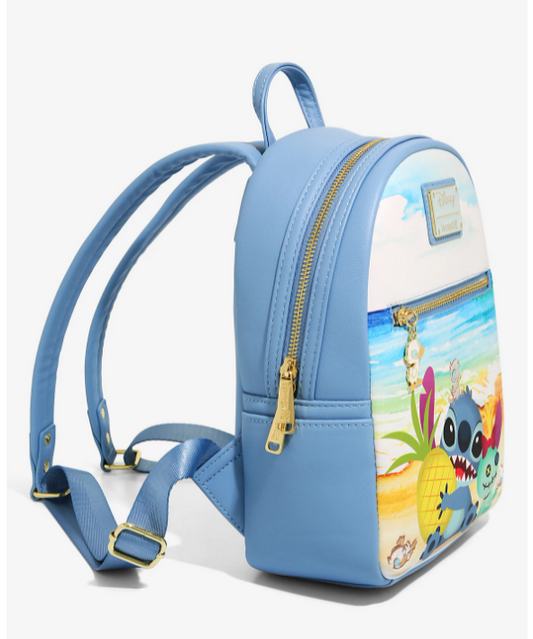 Mini sac à dos - Disney Lilo & Stitch - Sitch avec un Ananas à la Plage Bleu en Faux Cuir