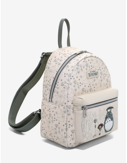 Mini sac à dos - Studio Ghibli Mon Voisin Totoro - Totoro Mei et Satsuki sous la Pluie Beige en Faux Cuir