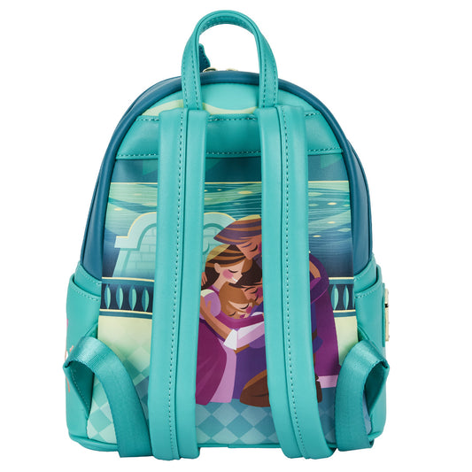 Mini Sac à Dos - Disney Raiponce - Raiponce et Flynn Devant le Château Brille dans le Noir en Faux Cuir