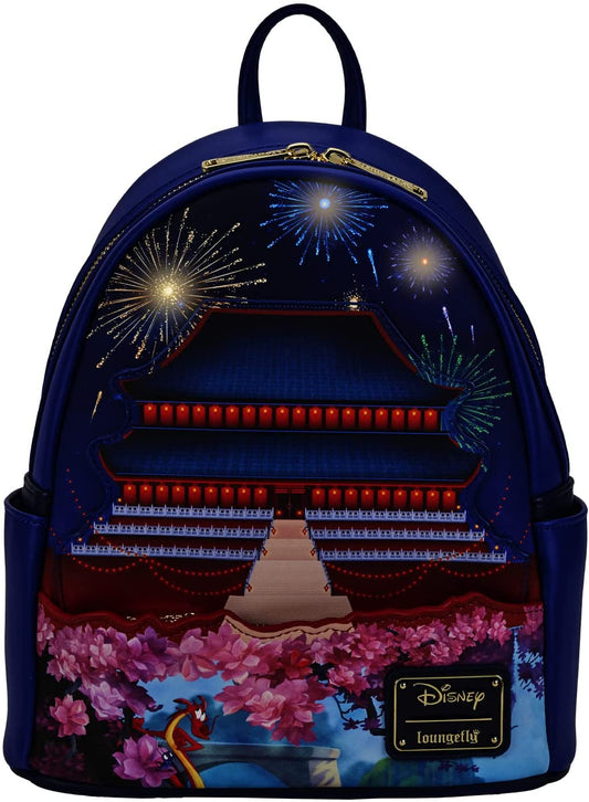 Mini Sac à Dos - Disney Princess Mulan - Château et Feux D'Artifices en Faux Cuir avec Lumière DEL