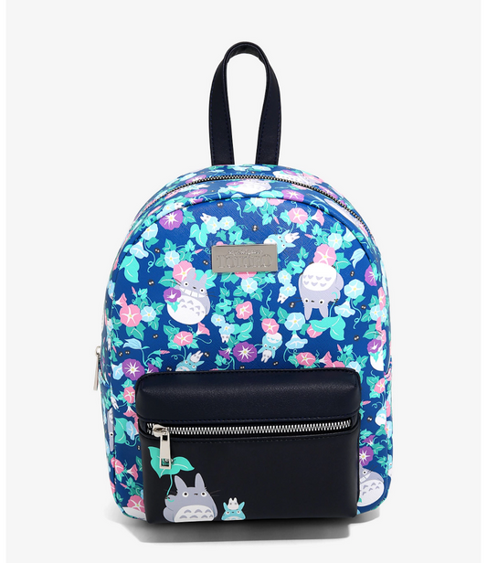 Mini Sac à Dos - Studio Ghibli Mon Voisin Totoro - Motif Floral d'Été en Faux Cuir