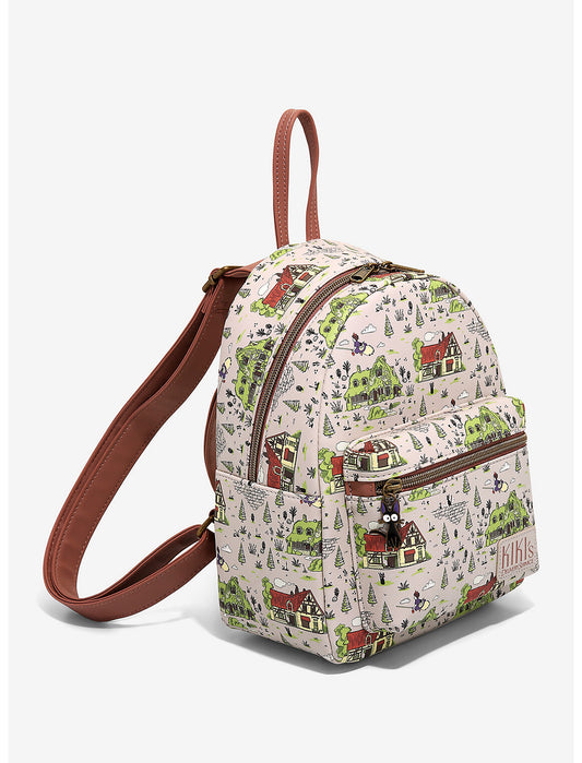 Mini sac à dos - Studio Ghibli Kiki la Petite Sorcière - Carte de la Ville avec Breloque de Jiji en Faux Cuir